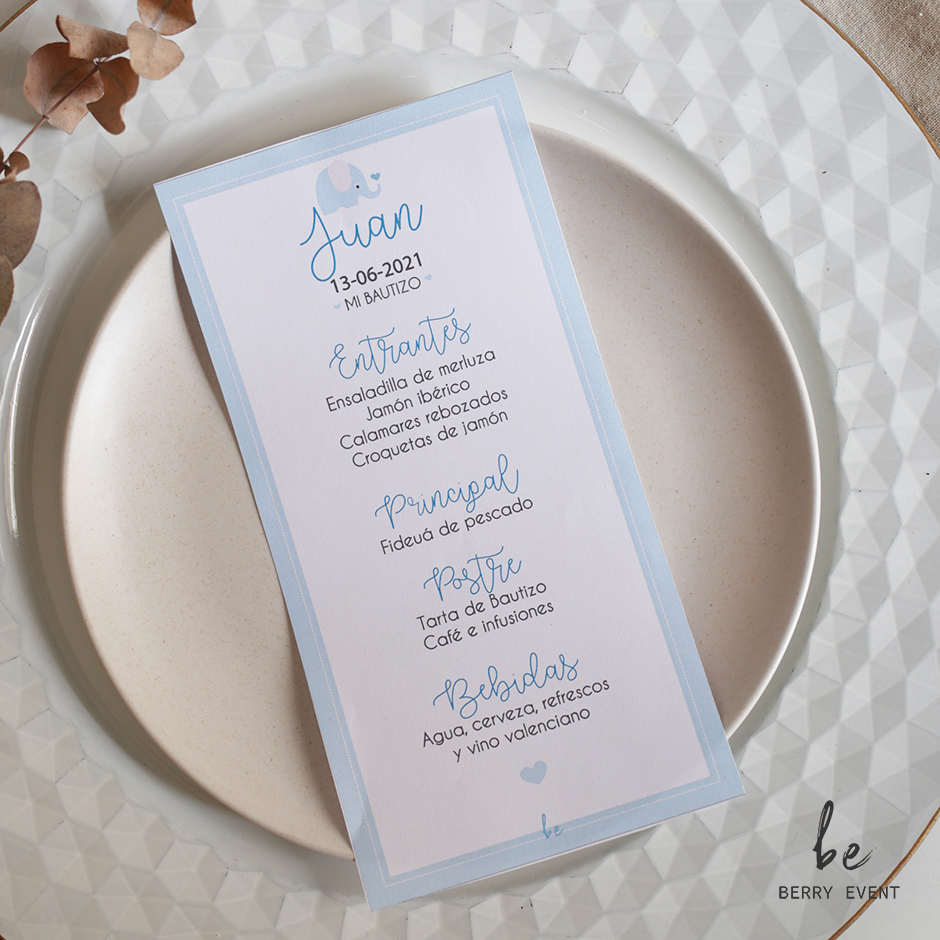 Minuta personalizada con el espectacular menú que vayáis a disgustar en vuestro día. Un detalle que marcará la diferencia. Todos tendrán un recuerdo del gran banquete, además poniéndolo encima del plato de cada uno de tus invitados le darás el toque final de tu increíble mesa.