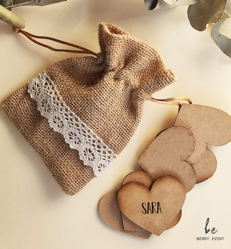 Set de corazones de madera DM (densidad media) con bolsa para ampliar vuestro libro de firmas y así que cada uno de vuestros invitados pueda dejar un pedacito de él. Con estos corazones podrán escribir más de dos personas en cada corazón o una lo grande, ¡nos parece una ideaza!