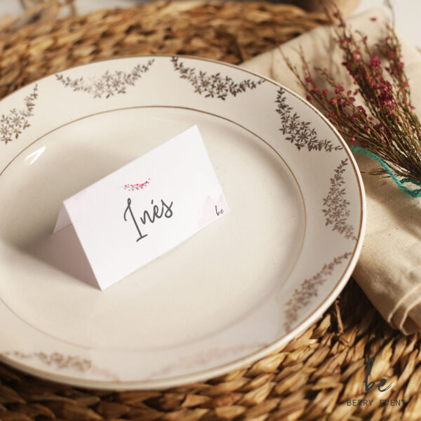 Tarjetita con el nombre de cada invitado para poner en el sitio correspondiente de cada uno. Una solución bonita y sencilla para que no tengas que preocupar de nada. Este pequeño detalle se lo podrán llevar como recuerdo de un día especial.