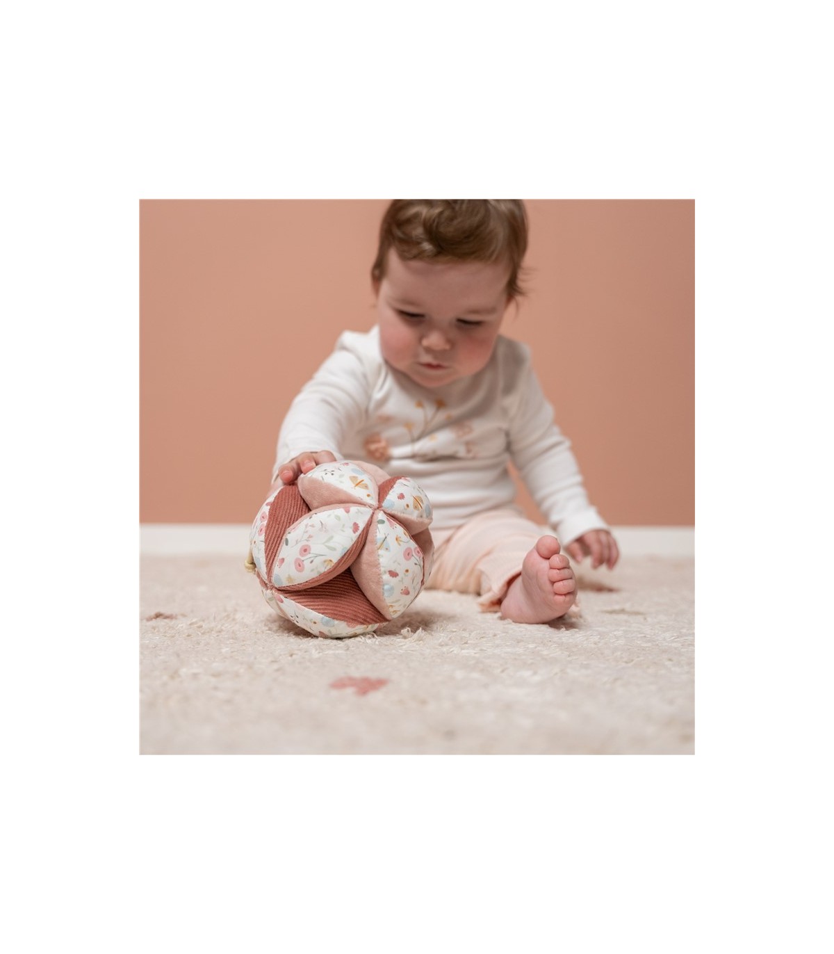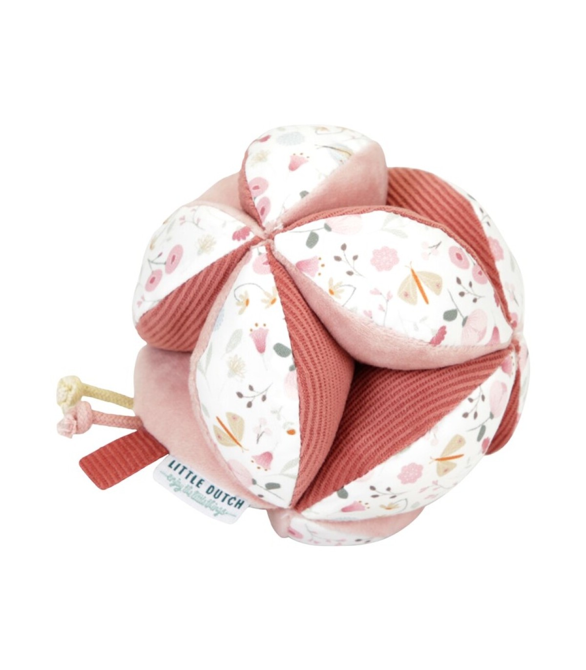 Esta preciosa pelota sensorial con sonajero de la colección Flores & mariposas de Little Dutch está compuesto por 12 almohadillas suaves con diferentes texturas y patrones. Es perfecta para las manos pequeñas y cuando se mueve, tu peque oirá el alegre tintineo de la campana que hay en su interior.