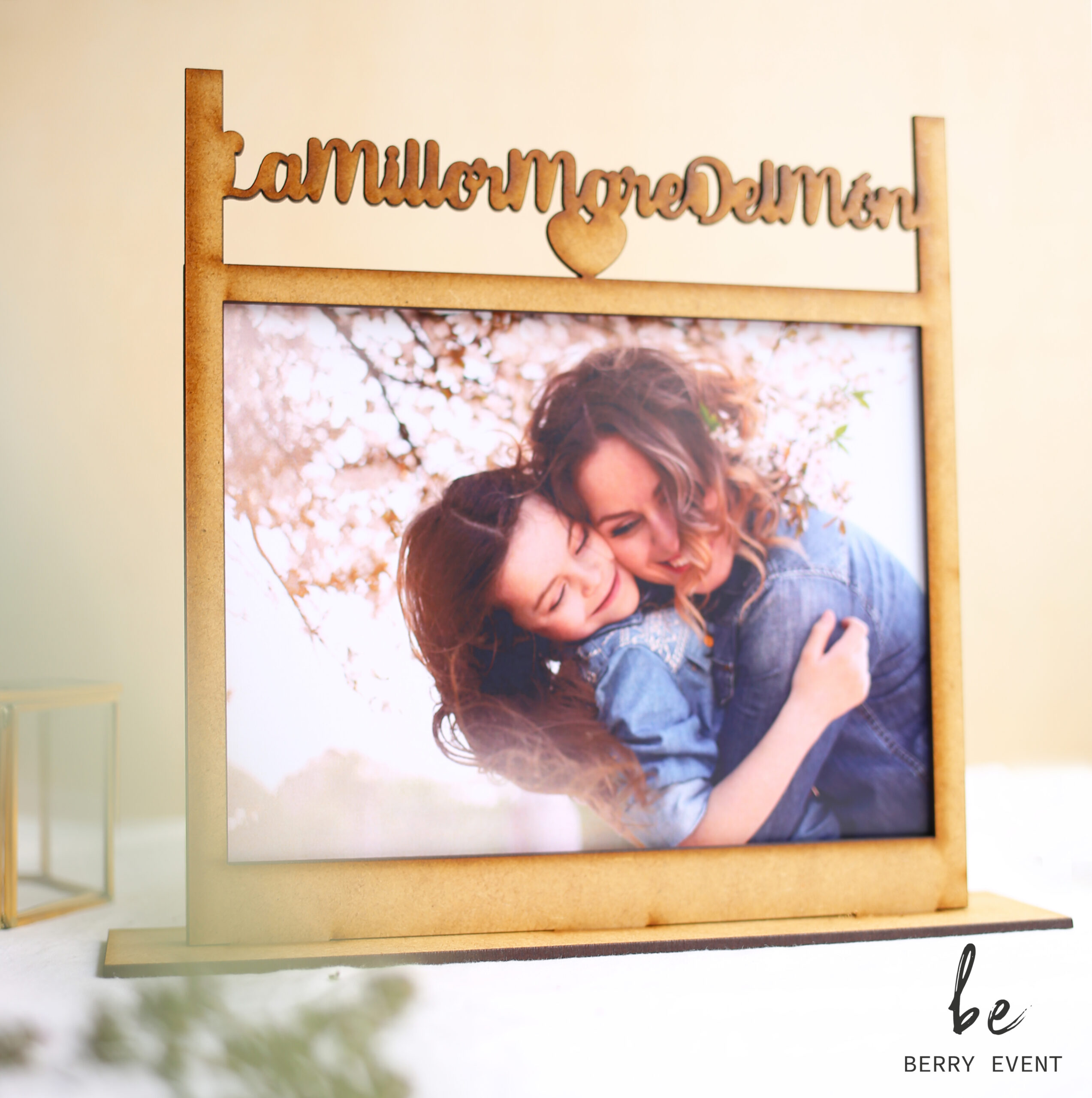Marco de fotos de madera con frase «La mejor madre del mundo – La millor mare del món», con una fotografía de 15 x 20 cm con lo que podrás sorprender a tu mamá en un día tan especial y que será el mejor regalo para la mejor madre. Es ideal para dar alegría a cualquier rincón de casa.