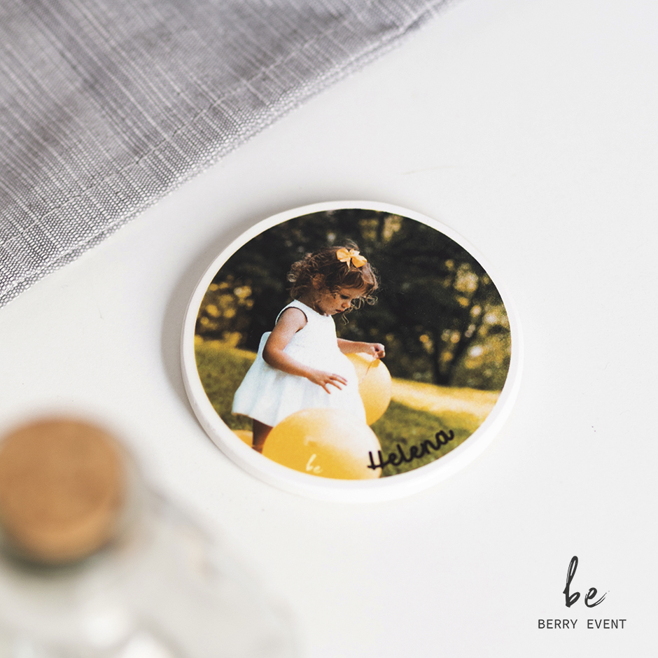 Imán redondo de cerámica personalizable, ideal para cualquier evento. Un detalle que recordarán con mucho amor.